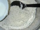 (1)薄力粉・全粒粉・ベーキングパウダーは合わせてふるい、すりごま・パセリと合わせておく。 ![]() (2)粉の真ん中にバター(冷たいもの)を置き、指でちぎる。 ![]() (3)ちぎりながら、粉をまぶしてゆく。 ![]() (4)バターの固まりに粉をすりつけながら少しずつ粒を小さくしてゆき、全体にさらさらになじませる。 ![]() (5)全体にバターが散ってさらさらになったら、牛乳と水をまわしかけて手で混ぜながら生地をまとめる。 ![]() (6)ぼろぼろしてまとまりにくければ水を少量ふり、全体になじませながらまとめる。 ![]() (7)ラップにきっちり包んで、冷蔵庫で20分ほど休ませる。オーブンを160℃にあたためておく。 ![]() (8)オーブンシートの上に生地をのせ、手でぐいぐい押して適当に平たくする。 ![]() (9)生地の上からオーブンペーパーをのせ、その上から麺棒で厚さ2mm程度にのばす。 ![]() (10)シートごと天板に移し、上のペーパーをはがす。フォークでつついて、全体に穴をあける。 ![]() (11)4cm×4cm四方の正方形になるようにパイカッターをころがす。 ![]() (12)包丁で切れ目を入れるのでもよい。 ![]() (13)160℃のオーブンで15分分焼く。オーブンは種類によってくせがあり焼き加減が異なるので、適宜加減する。 ![]() (14)冷ましてできあがり。しけないように、缶などに入れて冷暗所に保管し、早めに食べきる。 ![]() メモ: 台所にある材料ばかりで作ったので、飼い主さんにも食べていただけます。朝食にクリームチーズやジャムをのせて、召し上がれ。 ビスケットとクラッカー、どの生地も、冷凍保存できます。「冷蔵庫で生地を寝かせる」のところで適当に生地を分割してラップにくるみ、冷凍庫へ。 焼くときには、冷蔵庫で解凍して、のばして型抜きし、焼きます。まとめて作り置きしておいて、ちょびっとずつ焼きたてが食べられますよ。型抜きしたものを平たく並べて冷凍し、凍ったら密閉袋に入れて冷凍保存…でもOK。 |