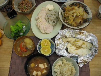 12月16日(水) さらに寒い。 鮭が届く。 菜焼き、葱とかぶといんげんの味噌汁昆布だし。 7:20 三分搗きごはん、みそ汁、塩鮭ほぐし、納豆、ブロッコリごまマヨ和え、明太子、たくあん 12:40 おむすび、チーズ 20:42 鶏手羽と根菜の煮物、ちりめんじゃこ入り菜焼き、揚げと葱と蕪のみそ汁、玄米ごはん、明太子、キムチ、塩鮭ほぐし、ブロッコリごまマヨ