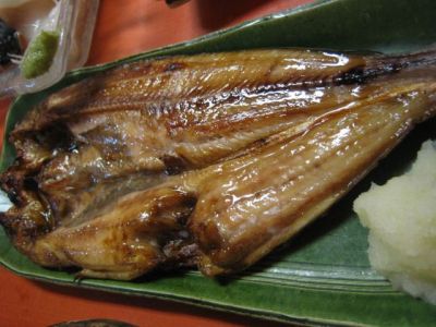 食:7時半、ご飯、味噌汁、ハムエッグ、焼き鮭、切り干し大根煮、山芋短冊、いごねり、海苔(民宿)