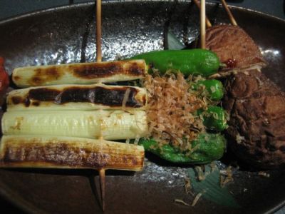 夜、民宿で地元の物を中心にごちそう。山ごぼうを入れた手打ちそばがうまい。じゃが芋を細く切って、水にさらし、炒めて酢、砂糖、
