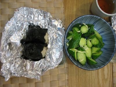 13:30 おむすび、切り干し大根煮、チーズ(お弁当)
