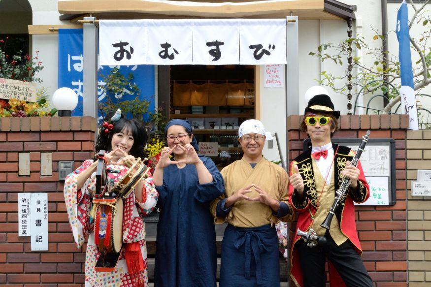 当日は、塩むすび、おさくらごはん、赤飯と、つぼん汁(熊本県球磨地方の郷土料理)のおふるまいをさせていただきました。
