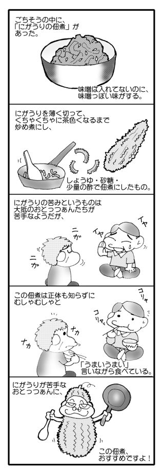 ■秋の水俣へ! ![]() 先日、熊本県の水俣市にうまいもんを食いに行くという夢のような機会に恵まれた。ヤッホー。 たまにはこんないいことがある。 水俣というところは、すごく広いわけではないのに、川の水源から河口まで、山から海までがひとつの市にぎっしり詰め込まれているところである。つまり、山の幸、海の幸が無理なく食卓に同居できる、とても豊かなところなのですな。 私がお邪魔したのは、久木野地区というところ。立派な棚田が自慢の米どころで、「万石」という品種の香りモチ米が特産。この香り米を、ごはんを炊く時に1〜2割混ぜると、タイのジャスミンライスにも似た香ばしいごはんになる。 あちこち田んぼや畑、山などの「食べものが生まれるところ」を見せてもらった後、お昼は地元のおかあさんたちのグループがしつらえてくれた。テーブルにぎっしり並んだ色とりどりの、ごちそう、ごちそう、ごちそう! ここのごちそうは、実は普通ではない。 最近の旅館や和食レストランの「ごちそう」って、山だろうが海だろうが、えびフライに刺身盛り、なんぞを色とりどり取り合わせて出すだろう。松茸ごはんの松茸さんは大陸出身だったり、ひなびた温泉宿で伊豆産の伊勢エビが出たり…悪いとは言わないけど、「ここでなくても食べられるもの」で「ごちそう」が構成されていることが多い。 赤いものがあるとチラシ映えするからエビカニエビカニエビカニをばーんと飾り、ちまちま小鉢で客を煙に巻き、なぜだか必ず飛騨のミニこんろかちびちゃい牛肉の陶板焼き、もしくはどうにもならない紙鍋がアトラクションのようについている。山の中で刺身を出し、海辺できのこ釜めしが出たりする。本来彼らのふるさとのはずなのに、たいそう遠くからそばや山菜が船に乗ってやってくる。それが最近の外食産業の「おもてなし料理」のトレンドである。 ところが久木野のごちそうは、基本的に「そこでとれたもの」ばっかりでできているのだ。 下にメニューの全てを書き出してみる。 おむすび(万石) 太巻き(卵焼き、にんじん、しいたけ、きゅうり、桜でんぶ) 栗入り赤飯むすび まんじゅう(夏豆&ヨモギ) 赤目柏のだんご 地鶏めし(地鶏、しいたけ、たけのこ、にんじん、ギンナン) 地鶏の照り焼き 卵焼き(地鶏の卵) みょうがときゅうりのサラダ(みょうが、きゅうり) 煮染め(かぼちゃ、じゃがいも、しいたけ、にんじん、こんにゃく、大根切り干し、厚揚げ、ふき)たけのこきんぴら(干したけのこ、にんじん、ごぼう、) ニガウリの佃煮(ニガウリ、ごま) ニガウリの梅酢和え(ニガウリ、ごま、梅酢) ピーナツ豆腐(ピーナツ、葛、味噌) 地鶏汁(地鶏、ごぼう、にんじん、しいたけ、ねぎ) 巨峰、梨 どうよ。ヨダレたれてきませんかね。(私の子供の頃の方言では「よどが出る」という。) ![]() ■あるものが、じまんです。 現代の食生活の一般においては、献立のメインに動物性たんぱく質を据えないとなかなか格好がつかないものである。ごはんとみそ汁に、鶏肉の照り焼きや刺身、煮魚、とんかつ、などなど。メインに肉か魚がどーん、とあり、それにサラダや和え物などを添えないと、「今日のごはん」というスタイルがつくりにくいのだ。さらにおもてなしの「ごちそう」となると、肉や魚はさらに重要な「おもてなしアイテム」になる。クリスマスのパーティーメニューがいい例だけれど、鶏の丸焼きやフライドチキン、唐揚げ、もも肉の照り焼きなどがないと、どうもピンと来ないような気がするものなのだ。 ところが、この日の久木野の「ごちそう」の主役は明らかに「お米」だった。白いきらきらしたおむすび、赤飯、地鶏めしに太巻き。それを取り囲むほとんどのおかずは野菜や山の木の実などでできたメニューだ。なのに、色とりどりで、わくわくして、「ごちそう感」にあふれている。 それは、この土地が豊かな食べ物にあふれていることももちろんだけれども、久木野の人たちが自分たちの作っているお米や野菜が大好きで、誇りを持っているからなのだろうな、と思った。料理してくれたおかあさんたちも、お米や野菜を作っているおとうさんたちも、料理のことを聞くとにこにこしながら身を乗り出して、きらきらと話をしてくれる。ああ、この人たちは、ほんとに自分ちのお米が大好きなんだな。野菜も子供のようにかわいがって大事に育ててきたんだな。社のギンナンや山の栗や柿も、子供の頃から大切に守ってきたんだな…と思いながらいただくおむすびは、倍うまい。 自分たちの作っている食べものことを自慢できるというのは、とても幸せなことだ。日本人は遠慮がちな民族なので、他人にものをあげる時に「つまらないものですが」「ご笑納ください」などとへりくだるくせがある。奥ゆかしい和の風習なのかもしれないが、ゆきすぎると嫌味だ。私の子供の頃など、田舎が過ぎるせいか隣のバーサンがおかずをおすそわけしてくれる際、「まずいから捨ててね」と言