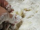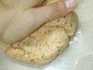 (1)薄力粉・全粒粉・ビール酵母・ベーキングパウダーは合わせてふるい、粉チーズ・パセリと合わせておく。 ![]() (2)粉の真ん中にバター(冷たいもの)を置き、指でちぎる。 ![]() (3)ちぎりながら、粉をまぶしてゆく。 ![]() (4)バターの固まりに粉をすりつけながら少しずつ粒を小さくしてゆき、全体にさらさらになじませる。 ![]() (5)全体にバターが散ってさらさらになったら、トマトジュースをまわしかけて手で混ぜながら生地をまとめる。 ![]() (6)ぼろぼろしてまとまりにくければ水を少量ふり、全体になじませながらまとめる。 ![]() (7)ラップにきっちり包んで、冷蔵庫で20分ほど休ませる。オーブンを160℃にあたためておく。 ![]() (8)オーブンシートの上に生地をのせ、手でぐいぐい押して適当に平たくする。 ![]() (9)生地の上からオーブンペーパーをのせ、その上から麺棒で厚さ2mm程度にのばす。 ![]() (10)シートごと天板に移し、上のペーパーをはがす。フォークでつついて、全体に穴をあける。 ![]() (11)4cm×4cm四方の正方形になるようにパイカッターをころがす。包丁で切れ目を入れるのでもよい。 ![]() (12)160℃のオーブンで15分分焼く。オーブンは種類によってくせがあり焼き加減が異なるので、適宜加減する。 ![]() (13)冷ましてできあがり。しけないように、缶などに入れて冷暗所に保管し、早めに食べきる。 ![]() メモ: 台所にある材料ばかりで作ったので、飼い主さんにも食べていただけます。朝食にクリームチーズやジャムをのせて、召し上がれ。 ビスケットとクラッカー、どの生地も、冷凍保存できます。 「冷蔵庫で生地を寝かせる」のところで適当に生地を分割してラップにくるみ、冷凍庫へ。焼くときには、冷蔵庫で解凍して、のばして型抜きし、焼きます。 まとめて作り置きしておいて、ちょびっとずつ焼きたてが食べられますよ。型抜きしたものを平たく並べて冷凍し、凍ったら密閉袋に入れて冷凍保存…でもOK。 |