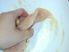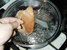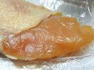 (1)鶏むね肉にはちみつをすりこみます。 ![]() (2)表面全体によくもみこんでやります。 ![]() (3)しょうがのすりおろしをまぶします。 ![]() (4)全体によくもみこみます。 ![]() (5)脱水シート「ピチット」を広げ、肉をきっちり包みます。 ![]() (6)密閉できるビニール袋に入れ、冷蔵庫に入れます。 ![]() (7)丸2日漬け込んだら、肉を取り出してピチットシートをはがします。もし1日たった時点でびしょびしょと水分が出ているようであれば、シートを取り替えてやります。 ![]() (8)水分が抜けてあめ色になっています。 ![]() (9)中型の鍋に湯をわかし、沸騰したら肉を入れます。この湯に昆布を入れておくと、ほんのりうまみが増します。 ![]() (10)肉を入れると温度が下がって沸騰が一時収まります。 ![]() (11)湯が再沸騰したらすぐに火を止めます。 ![]() (12)なべにふたをして、ひと晩そのまま放置します。温度・湿度が高くものが傷みやすい時期には、あら熱がとれたところで鍋ごと冷蔵庫に入れます。 ![]() (13)ゆであがり。 ![]() (14)スライスしておやつにしたり、細かく刻んでおじやに混ぜたりしてあげてください。塩分を添加していないので保存性は低いです。冷蔵庫で保存し、早めに使い切りましょう。(冷凍もできますが、味が落ちると思います) ![]() (15)スープには鶏と昆布のおだしが出ているので、おじやなどに活用しましょう。冷蔵庫で冷やすと表面に脂が浮いて固まります。これを取り除くとカロリーダウンできます。 ![]() メモ: 塩分を完全無添加にしてあるので、脱水シートで水分を取り除いてからゆでます。 ハムのようなジューシーな舌触りではありませんが、肉のうまみがぎゅっと詰まった「お肉の干物」ができました。 口当たりの悪さははちみつとしょうがでカバー。しょうがは体に抵抗力もつけます。 はちみつはちょっとぜいたくしてよいものを使ってみてください。 ゆでずに、グリルで香ばしく焼いてもおいしくいただけます。 ■ピチットシート 脱水シートです。ピチットスーパーだと、ラップやホイル、ジップロックなどのコーナーにあると思います。結構割高なので、私は合羽橋で業務用の割安なものを買って使っています。(「業務用 ピチット」で検索すると通販してるところも出てくるはず) 脱水シートを使うと、ひと塩した魚を包めば干物になり、お肉のおまみも凝縮できてなかなか便利なものです。 ※「鳥はむ」は、2ちゃんねる料理板生まれの人気料理です。詳しくは下記のサイトをご参照ください。 ■鳥はむの館 |