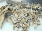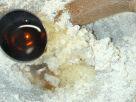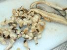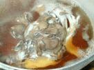 (1)豆腐は4〜5分ゆでるか電子レンジに2分ほどかけ、キッチンペーパーに包んで水気をとっておく。 (2)干ししいたけと昆布はかぶるぐらいの水に浸けて戻し、戻ったら中火にかけて煮る。 ![]() (3)まいたけはいくつかに裂いておく。 ![]() (4)しいたけがやわらかくゆであがったらざるにとり、細かく刻む。ゆで汁は捨てないこと。 ![]() (5)昆布もみじん切りにする。 ![]() (6) (4)のゆで汁でまいたけをさっとゆで、ざるにあげる。ゆで汁は捨てないこと。 ![]() (7)まいたけをみじん切りにする。 ![]() (8)炒りごまをすり鉢でよく摺る。 ![]() (9)ごまの粒がよくつぶれ、ねっとり感が出るまで摺る。練りごまの場合はいきなり豆腐とすり混ぜてよい。 ![]() (10)水気を切っておいた豆腐を入れ、すりこぎでごまとよくすり混ぜる。 ![]() (11)全体がよくなじむように、すり鉢の目に入ったごまも残さずよくすり混ぜる。 ![]() (12)はちみつを入れてよくすり混ぜる。 ![]() (13)きのこのゆで汁を加えてすり混ぜる。 ![]() (14)豆腐の水分にもよるので、量は適宜加減する。全体にとろりとする程度に仕上げる。 ![]() (15)刻んでおいたしいたけ、昆布、まいたけを加えてよく混ぜ、できあがり。 ![]() メモ: おじやにトッピングしたり、ゆで野菜を和えたりしてあげてみてください。 小分けしてラップにくるみ、冷凍保存できます。 きのこと昆布のゆで汁には抵抗力を付ける成分がたっぷり出ているので、捨てずにおじやなどに利用しましょう。 (12)の味付けの時に少し甘味を濃くし、薄口醤油を加えると人間用の味付けになります。取り分けて、わんこといっしょに楽しみましょう。 オリーブオイルを加え、細めのパスタと和えてもおいしくいただけます。 きのこは、他にもアガリクスやしめじ、えのき、マッシュルーム、エリンギなどなんでも使えます。 | |
