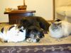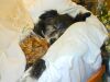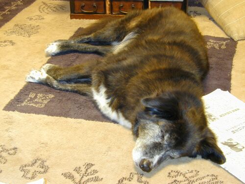 ルイが永眠した。行年12歳6ヶ月。 ルイは私の母と暮らしていた犬だ。 秋田犬の雑種。数年前、家のごたごたであわただしい引っ越しがあり、一時ペットホテルや知人宅に預けられたとき脱走。 数ヶ月放浪した後「分離不安症」を発症していた。 ひとときも、飼い主である母から離れられない。トイレやお風呂にまでついてゆく。 甘えん坊の寂しがりやだった。 7/18の深夜、母からメールが入る。 「ルイが大変!」 夜までなんともなく元気に遊んで過ごし、ごはんもおいしく食べたルイ。夜が更けてから急に苦しみだした。みるみるふくれてゆくおなかに驚いた母は、犬友達とともに時間外の動物病院に急行。 おなかのガスを抜いてもらい、ひとまずラクになったルイ。 病名は「胃拡張」。胃がねじれて封鎖され、動きが止まってしまう。閉じこめられた食べものが胃の中で腐敗し、急激にガスを発生させる。 予防法も原因も、詳しいことはよくわかっていない、事故のようなものだとか。 そろそろ老犬の域に踏み込んでいたルイ。心臓が弱く、健康診断の時に雑音がしていた。 7/19。二度目の発作は早朝だったらしい。苦しまず、先に心臓発作を起こして苦しまずに逝ったルイは、いつもと同じ穏やかな顔でねむっていた。 「すぐにお別れをするのは忍びないとの母の意向で、この日は「お別れ会」。ねむっているようなきれいなるいをお気に入りのベッドに寝かせたまま連れて行った。 お別れ会にはびっくりするぐらいたくさんの人がルイにお別れをしに集まってくれた。 「ひまわりの森」のるんばさんやNAOさん。名古屋や大阪からも友達が…るいの友達がさよならを言いに駆けつけてくれた。 みんなにナデナデされて穏やかにねむるルイ。とても幸せそう。 近所の小学生たちもお花をつんできてくれた。 本当に愛されていたルイ。 晩年は、いつも大好きなおかあさんといっしょにいた。 車に乗って、いつでもどこでもいっしょ。 手作りのおいしいごはんを食べて、いっしょに暮らしている二匹の猫とも仲良くぬくぬくしていた。 本当に、かわいい犬だった。 |